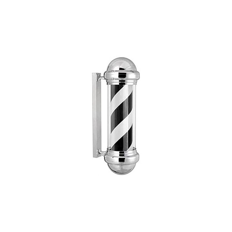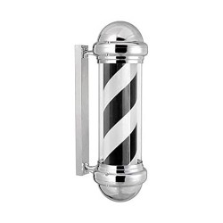 · Se trata del clásico rótulo cilíndrico de peluquerías y barberías, que combina colores blanco y negro.