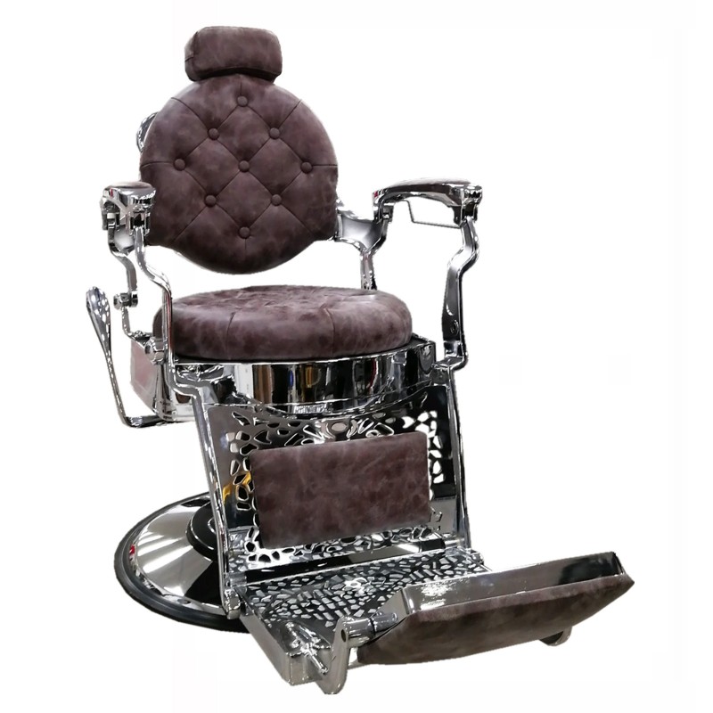 - 【Sillón de Barbero】: Sillón de barbero de color marron de poli piel con soportes metálicos en plata que le dan un toque estilizado mientras que le da un buen contraste de colores.
