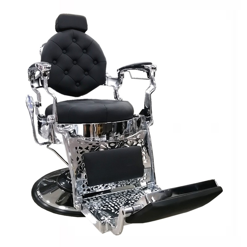 - 【Sillón de Barbero】: Sillón de barbero de color negro de poli piel con soportes metálicos en plata que le dan un toque estilizado mientras que le da un buen contraste de colores.