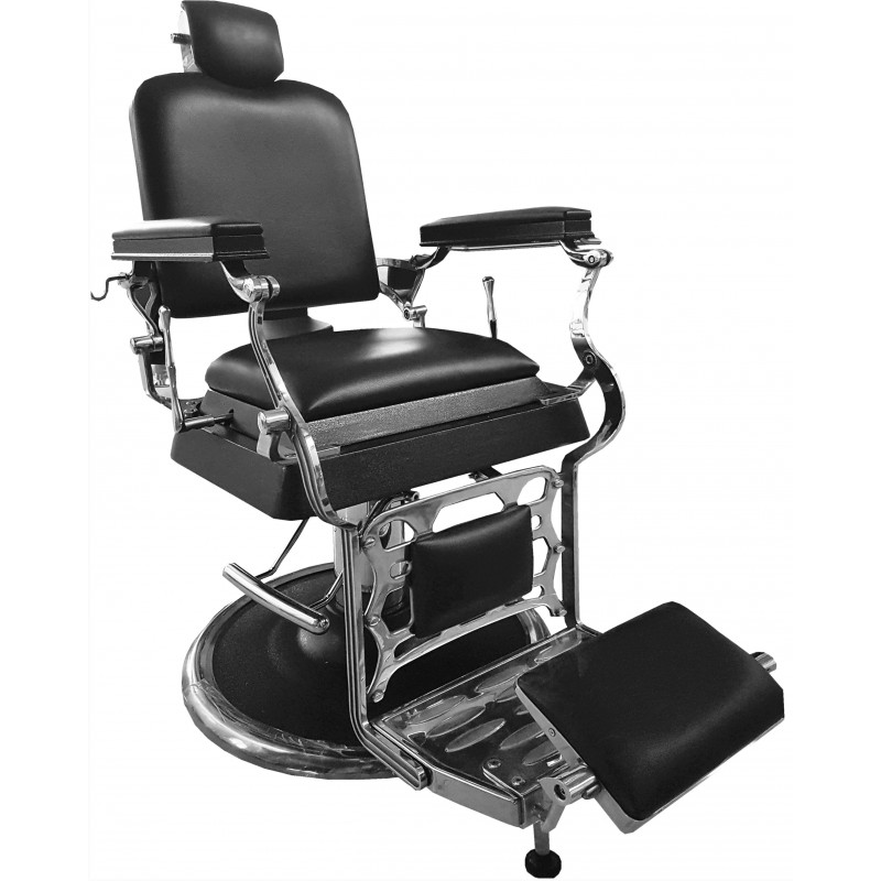 - 【Sillón de Barbero】: Sillón de barbero de color negro de poli piel con soportes metálicos en plata que le dan un toque estilizado mientras que le da un buen contraste de colores.
