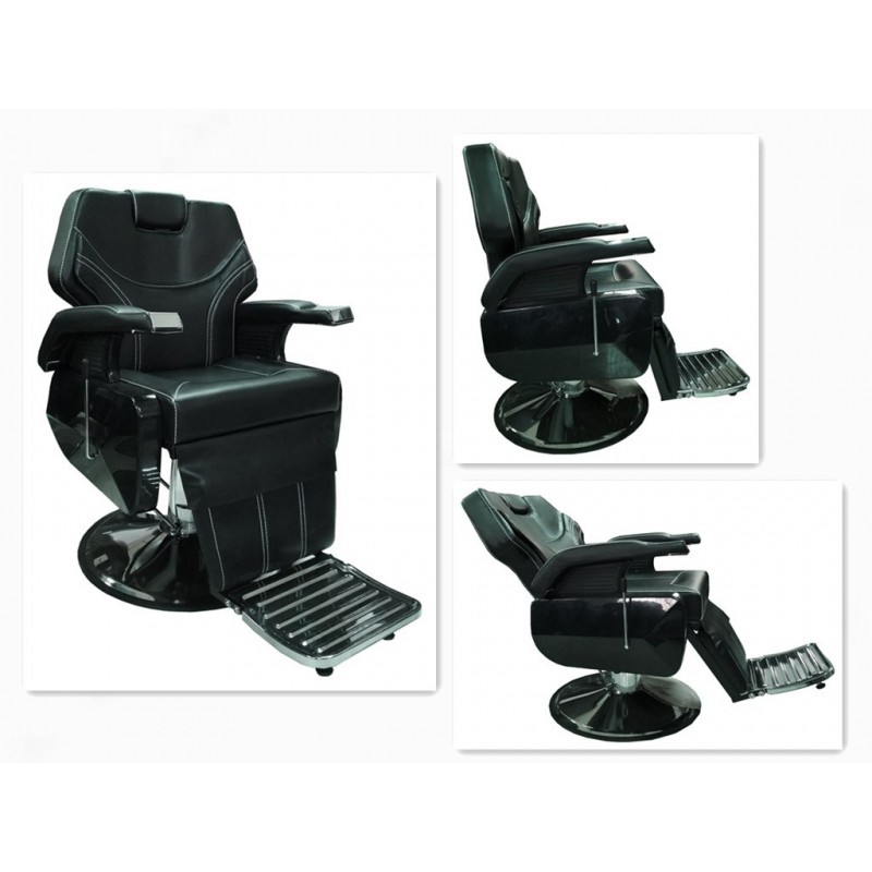 - 【Sillón de Barbero】: Sillón de barbero de color negro de poli piel con soportes metálicos en plata que le dan un toque estilizado mientras que le da un buen contraste de colores.